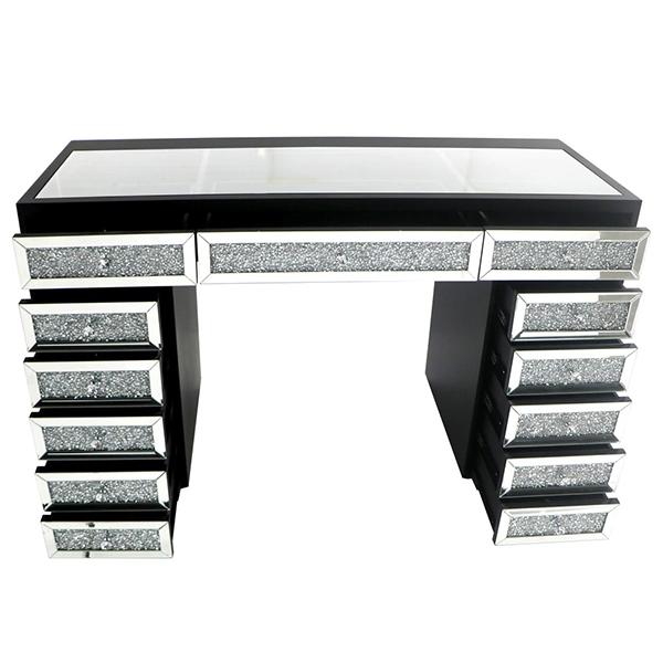 Ortega Black Mirror with Silver Crystal 11 Drawer Makeup Vanity